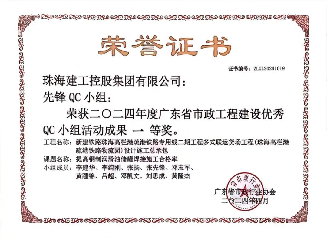聚焦創新引領,以科研創新為第一生產力,引領建筑產業轉型升級及高質量發展,2024年,珠海建工集團以QC小組活動為切入點,以“創新提質、強基增效”為主題,用QC“小活動”,推動高質量發展“大作為”,動員技術條線全員參與質量改進,強化質量意識,推進全面質量管理,QC成果榮獲,國家級一類成果1項,省級優秀QC成果15項,優秀發布者1名。