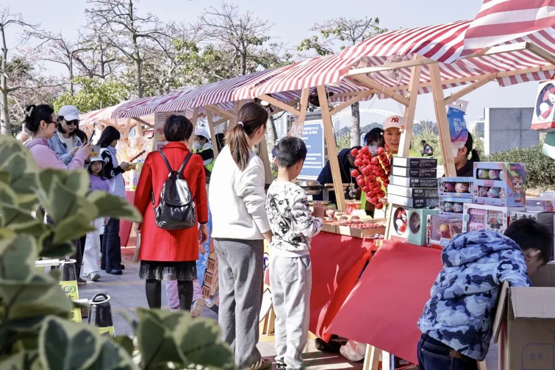 除此之外,每逢周末,一號(hào)、二號(hào)和三號(hào)驛站開(kāi)展東灣墟市活動(dòng),斗門(mén)蓮洲鎮(zhèn)東灣村農(nóng)產(chǎn)品市集走進(jìn)花海,帶來(lái)優(yōu)質(zhì)的本地產(chǎn)綠色農(nóng)產(chǎn)品、特色手工糖水和農(nóng)副產(chǎn)品、非遺點(diǎn)心小吃等,吸引了大批市民游客上前詢問(wèn)和購(gòu)買(mǎi)。游客在享受美景、體驗(yàn)美食之旅的同時(shí),亦促進(jìn)了鄉(xiāng)村振興與滿足城鎮(zhèn)消費(fèi)需求的良性循環(huán),鄉(xiāng)村市集在花海煥發(fā)出了新活力。