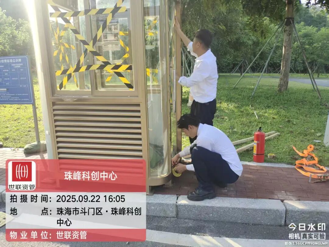 對珠光集團旗下園區內的樓宇廣告牌、生命通道、應急避難場所等防汛防風部位的隱患全面排查和清理。要求應急人員全部到崗到位,對防汛物資,應急物資準備情況以及值班、搶險隊伍備勤情況和園區建筑物排水系統、消防系統、監控系統、外立面及門窗系統進行全面排查。做好園區企業客戶的安全保障工作,同時對園區企業和商戶盡數告知和勸導,堅決落實“五停”措施,預備應急避難場所。